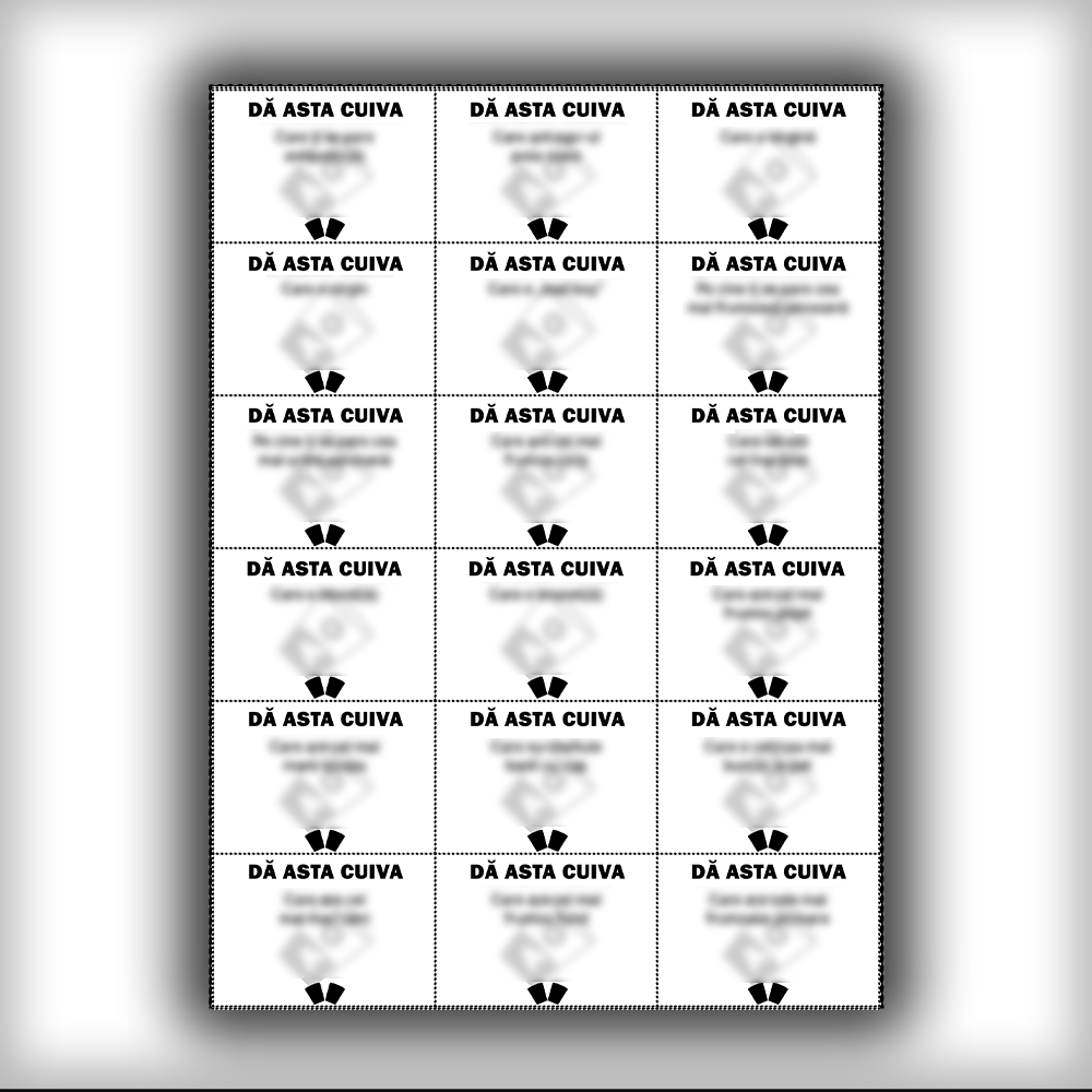- 250 De cărți din jocul „Dă Asta Cuiva”